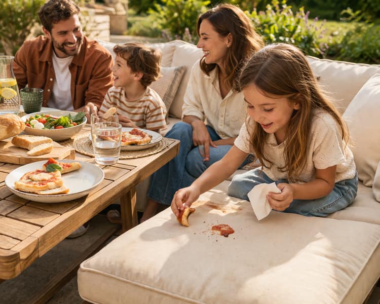 Profiter d’un coussin de bain de soleil en famille, que ce soit au bord de la piscine ou sur la terrasse, c’est vraiment l’un des petits plaisirs des beaux jours. Mais entre les moments de détente, les goûters dehors et les allées et venues, les coussins se salissent vite et perdent un peu de leur confort.